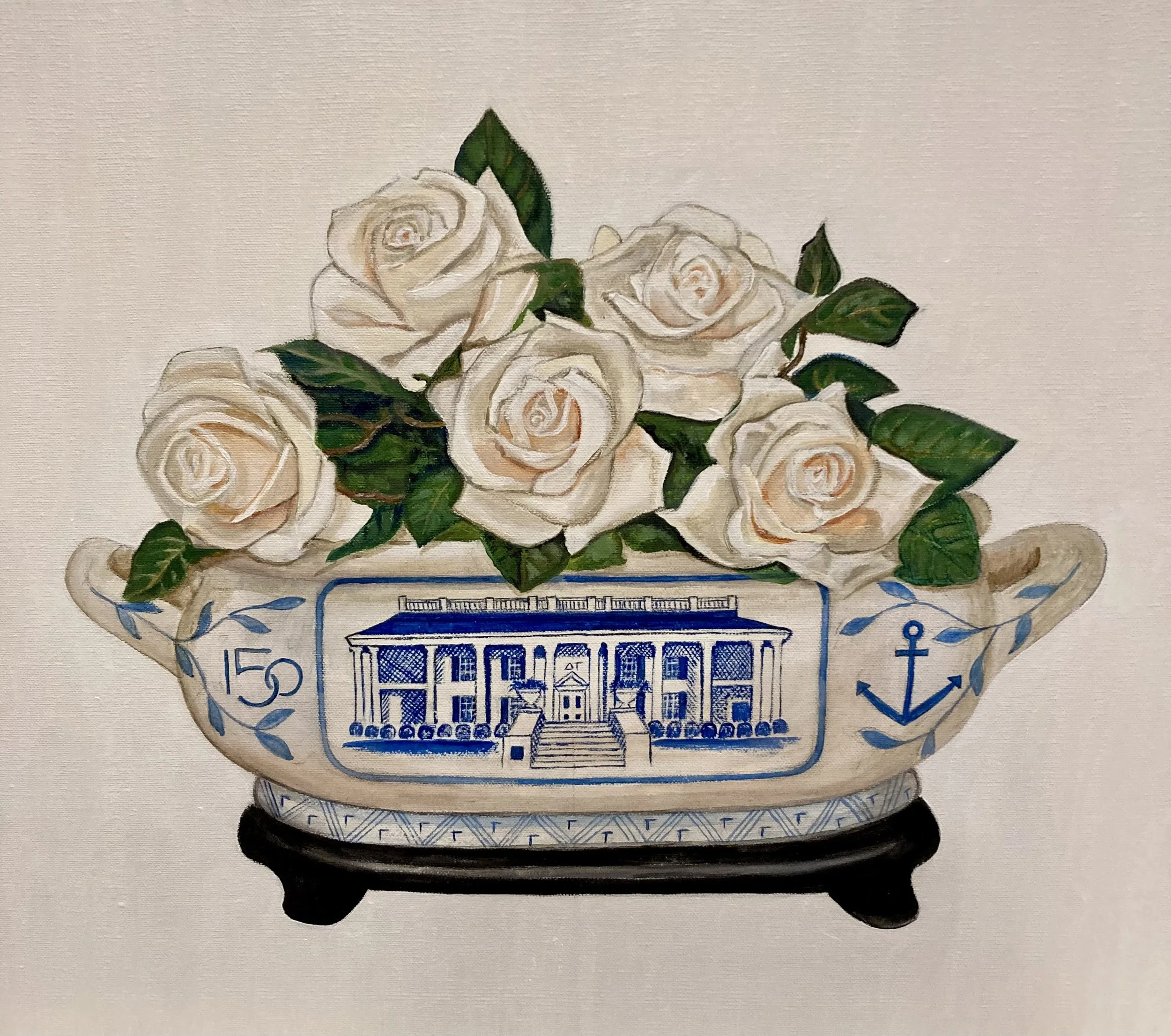 Rosie Vassallo’s portfolio spans a wide range of subject matter and mediums, unified by a thoughtful attention to detail and a deep appreciation for place, history, and personal connection. From Ole Miss–inspired paintings and architectural landmarks to custom commissions, portraits, and decorative art pieces, her work blends classic Southern charm with a refined, contemporary sensibility. Her Rebel Blue and White vase collection further reflects this signature style, with the first two original pieces proudly displayed at the front desk of The Inn at Ole Miss. Each piece is created with intention, offering collectors artwork that feels both meaningful and timeless.
